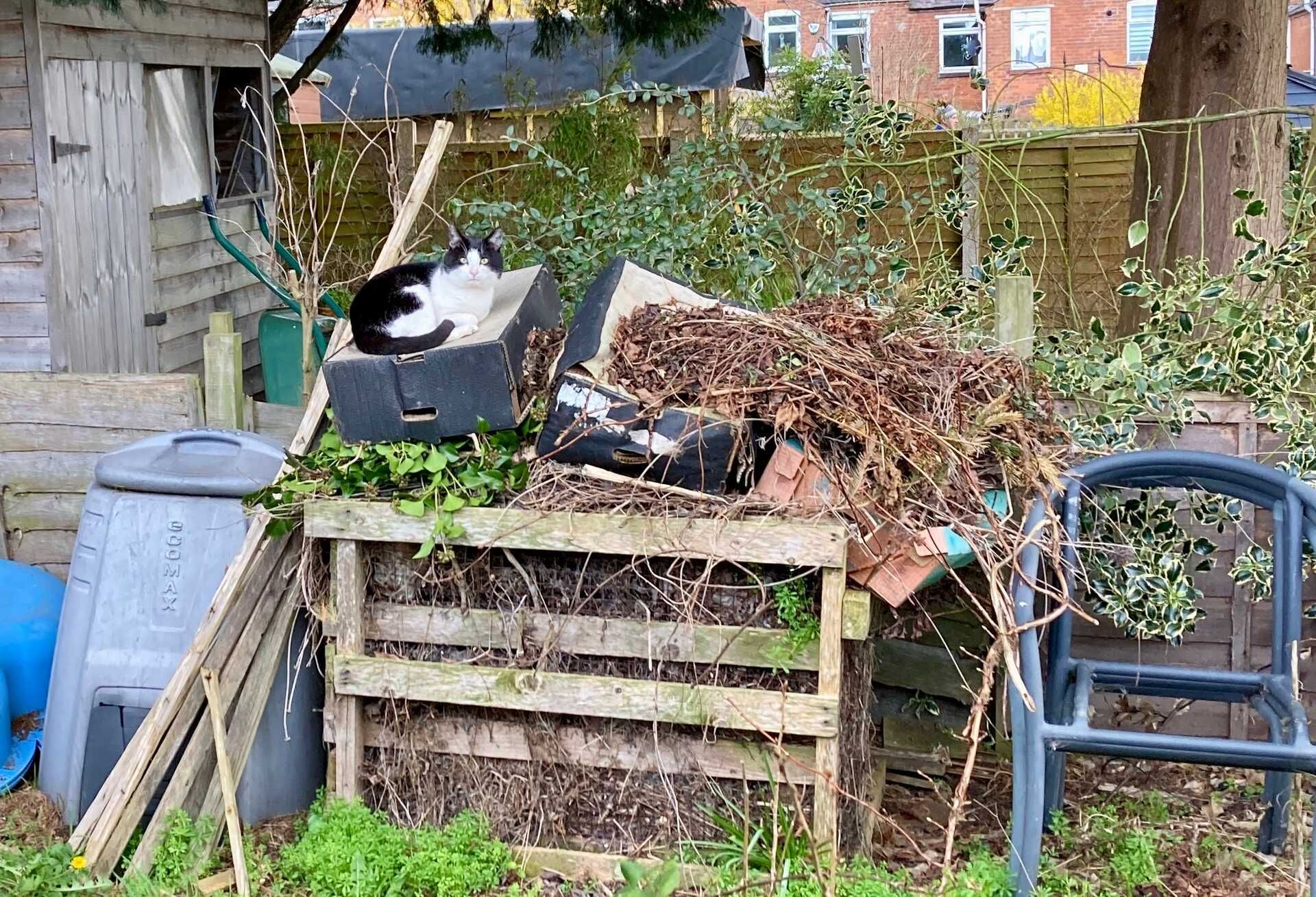 Compost heaps are warm and attract mice so of course cats can be found on them! If you find a cat on your compost heap, send it my way!